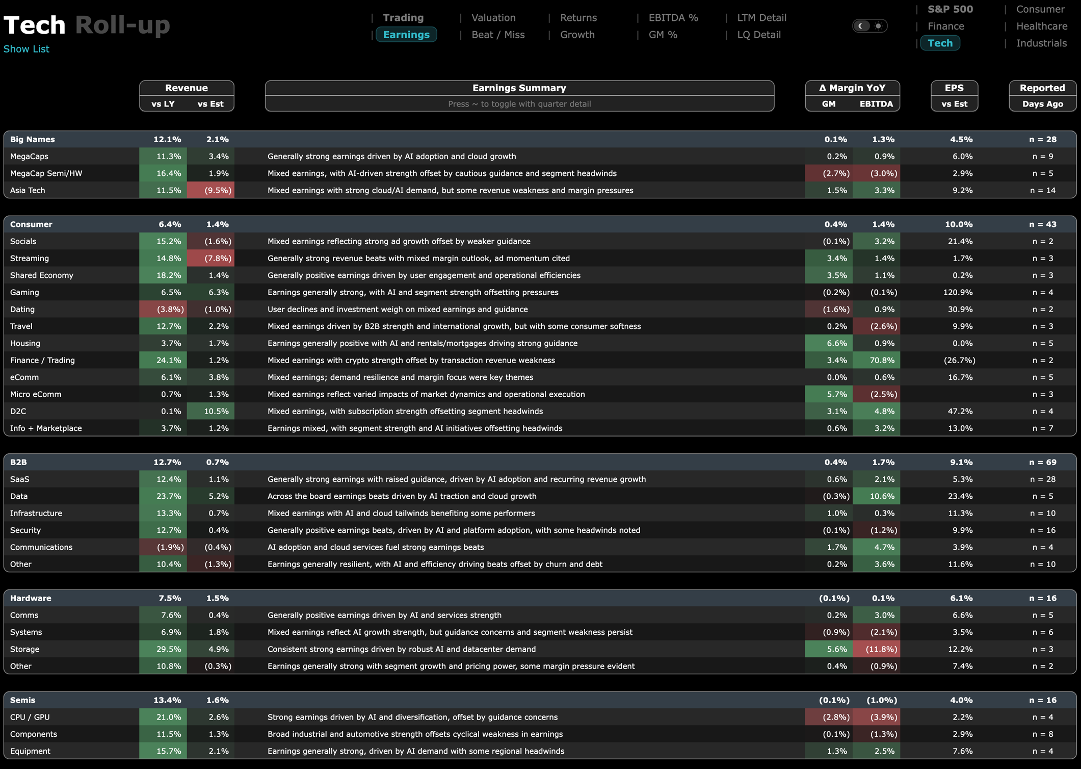 Earnings by subsector