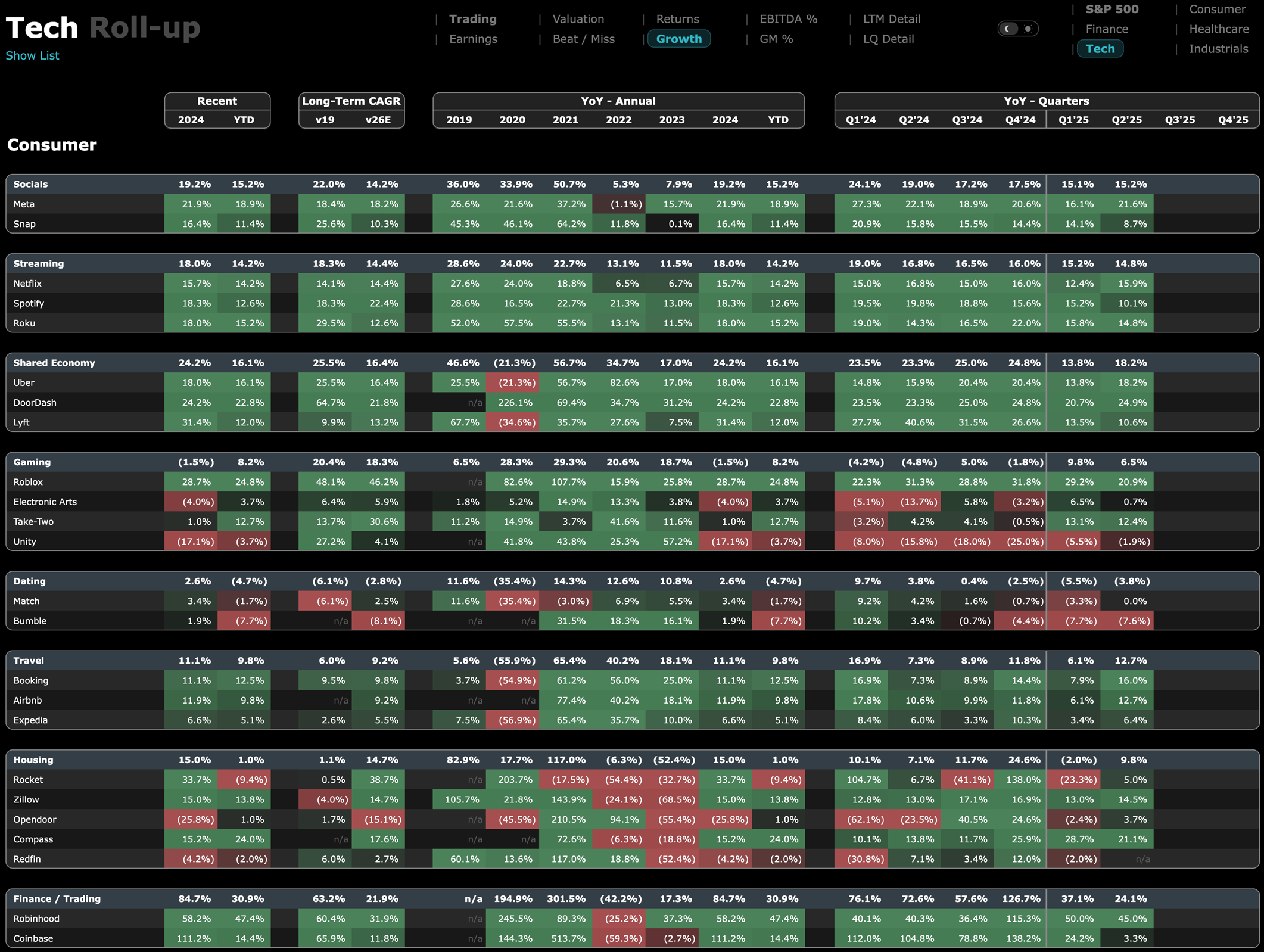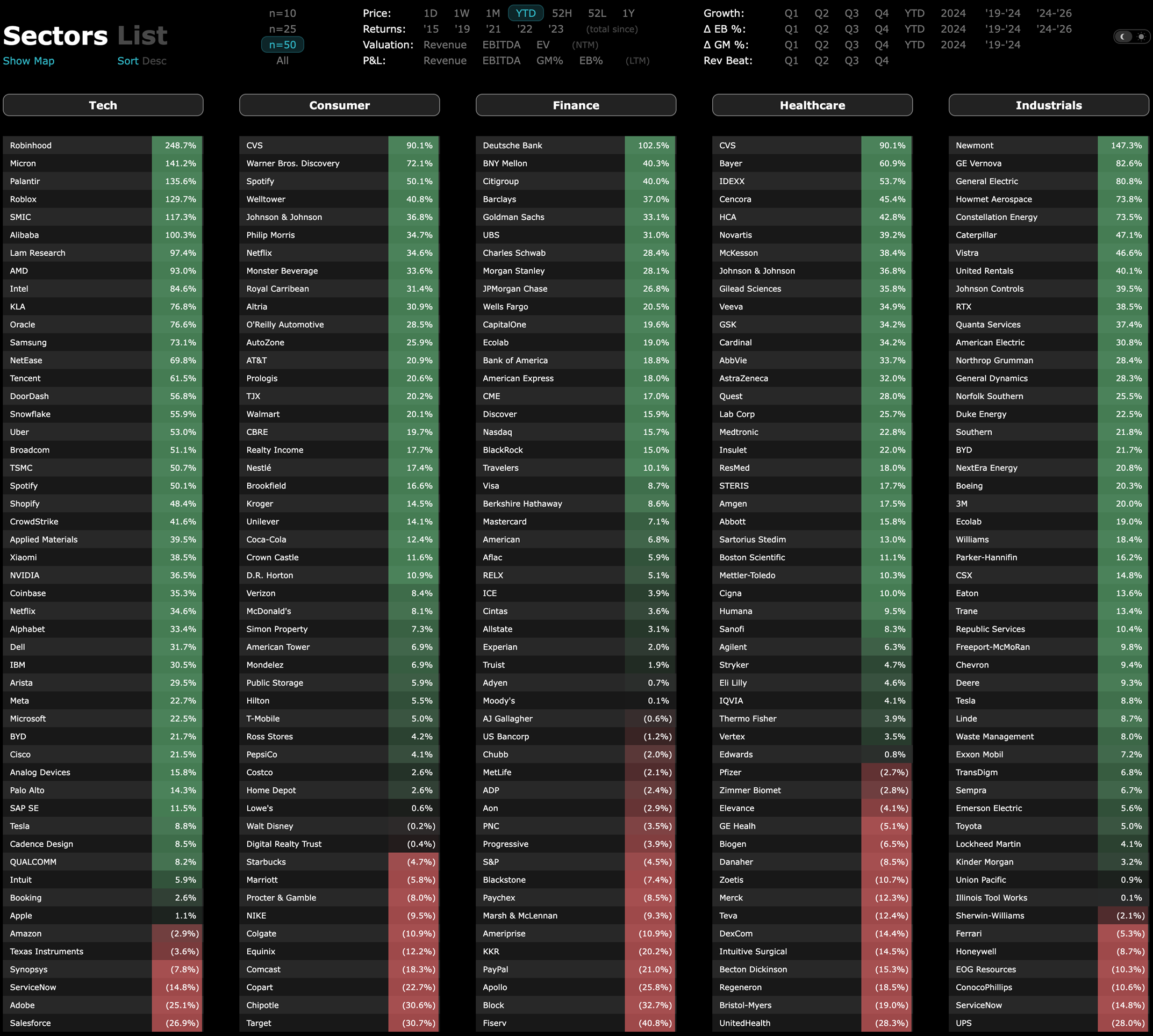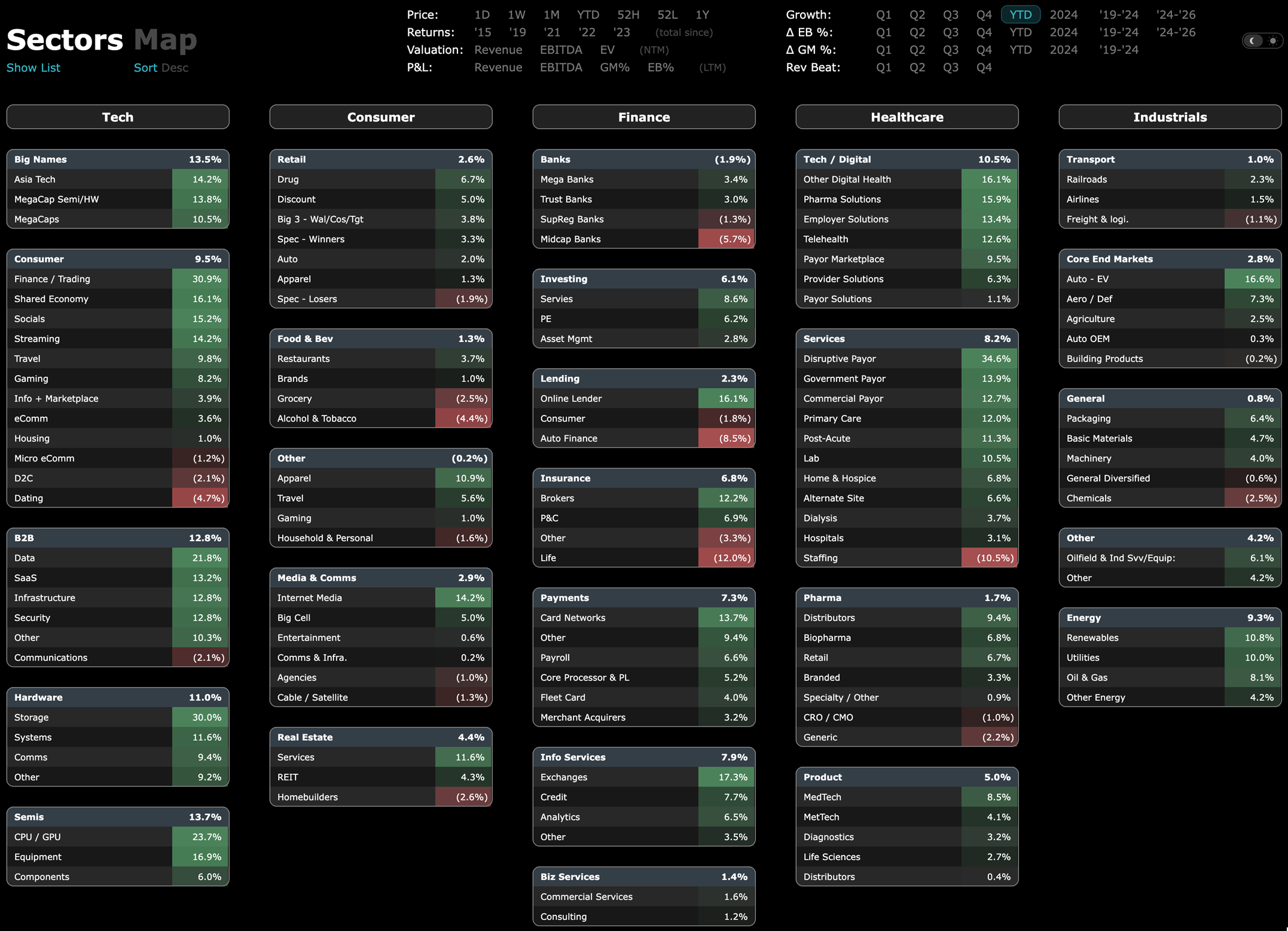 YTD growth across sectors